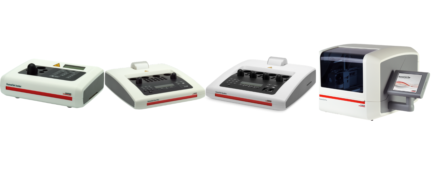HUMAN's analyzers range from semi-automated instruments HumaClot Junior, HumaClot Duo and HumaClot Quattro to the fully automated benchtop analyzer HumaClot Pro.